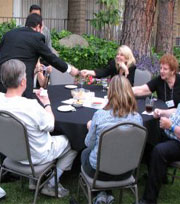 At the MacGathering computer expo, Magic Bob Weiss did strolling magic during the MacMixer for Mac users, independent business folks, Jerry Mathers, and as you see here, Jeff Levy KABC Radio's Computer star.