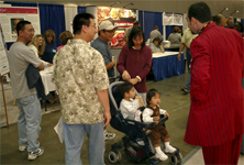 If there are customers to be brought into your booth, he's out there to attract them. As you or your team step in, he bows out gracefully or he can work in tandem with your sales person.